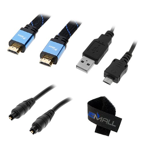 GTMax 6 FT High-Speed HDMI Flat Nylon Cable + 6 FT Digital Optical Audio Toslink Cable + 6 FT Micro-USB Sync & Charge Cable for Apple TV 2nd and 3rd Generation with *Cable Tie* Overview for Sale - Review & Buy at Cheap Price
